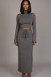 mock neck crop top, bell sleeve top, maxi skirt with drawstring, adjustable waist skirt set, versatile top and skirt set, women's matching sets, stylish two-piece outfits